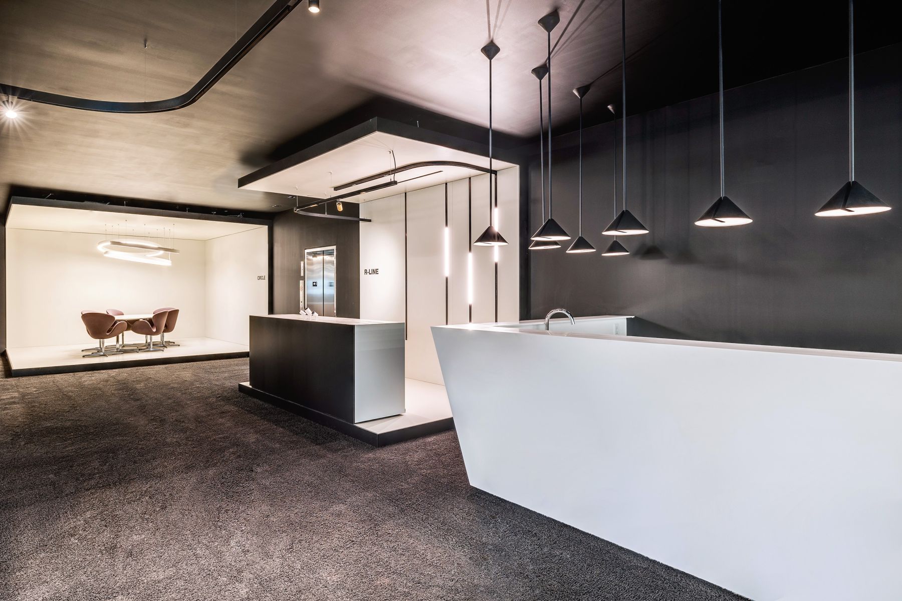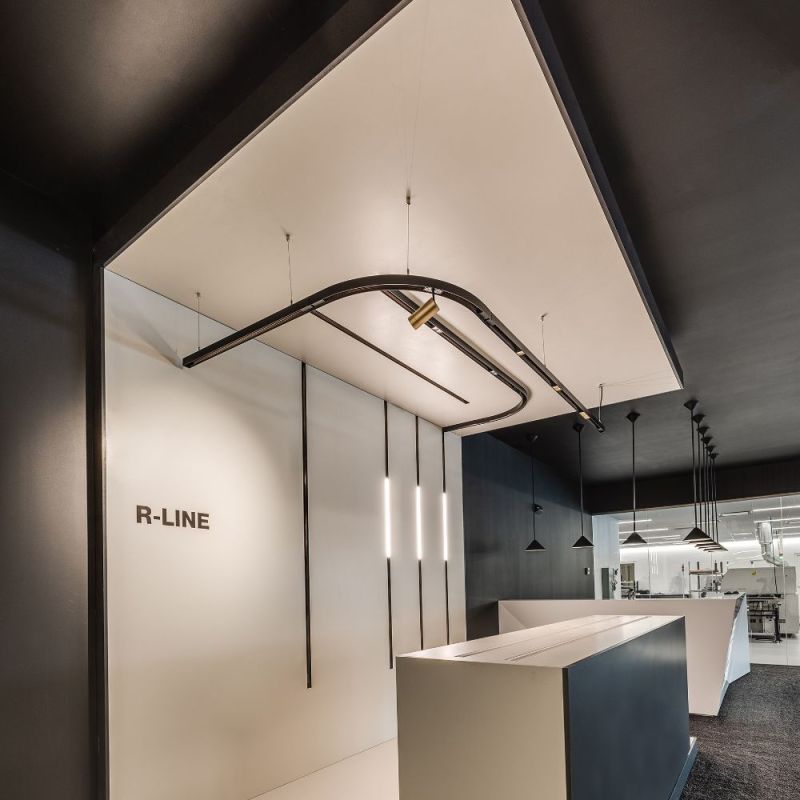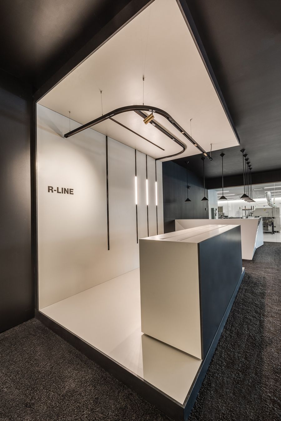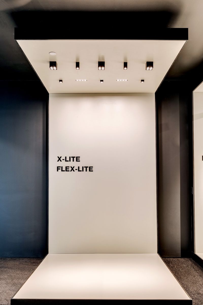 Along with practical applications, there are specially designed booths, featuring a selection of products. From the industrial application of BASO and LENO in our production line, the clean and professional presentation of CIRCLE, through to the dynamic and striking appearance of R-LINE and M-LINE, the factory presents the best of our lighting.