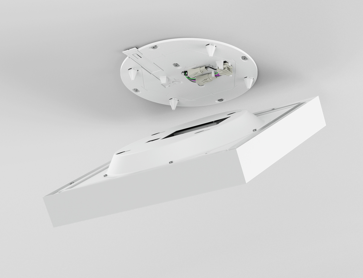 For surface mounting, use the powered mounting plate that screws into the ceiling