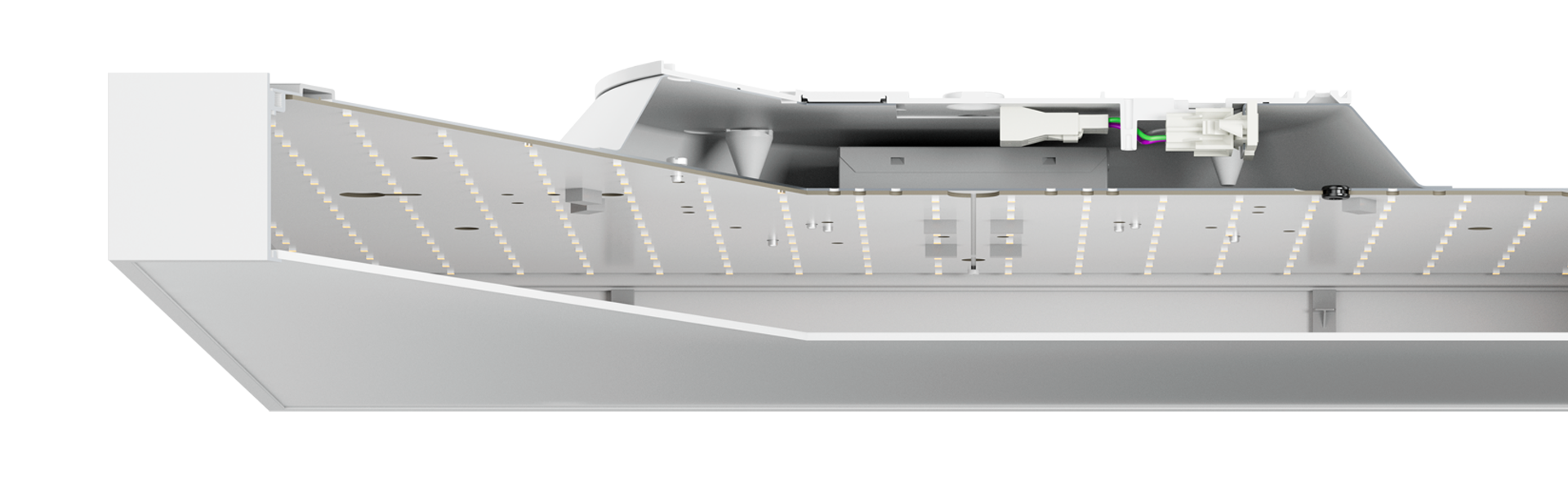 PCB coating that provides 90% reflectivity and the high-performance opal cover emits uniform illumination.