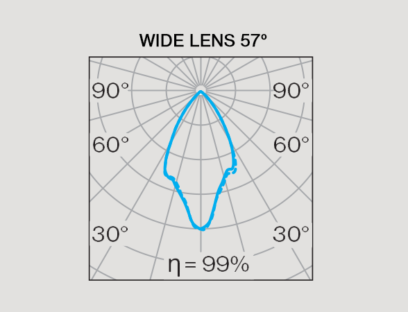 The high-performance lensing provides uniform illumination accross beam angles thanks to special material composition with increased transmission and diffusion.