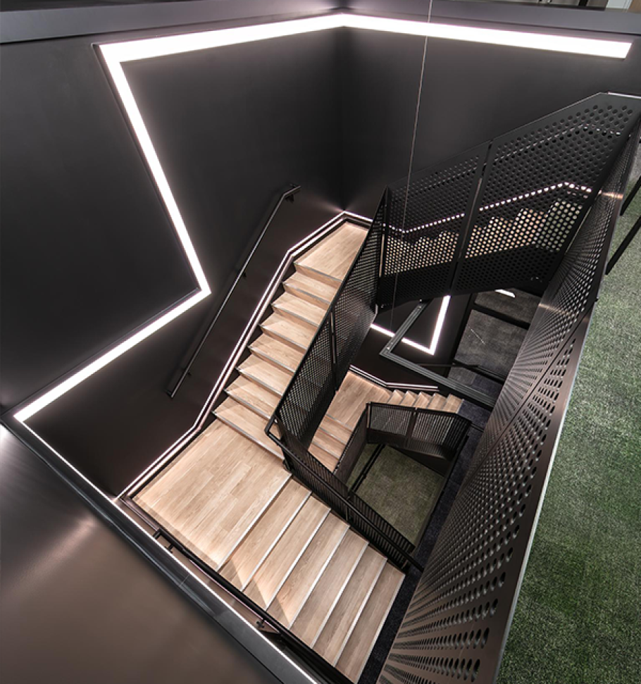 Our offices in Connecticut are an extension of the factory, bridging the gap between production and development. The hallways use M-LINE and TUBE insets to stretch down the...