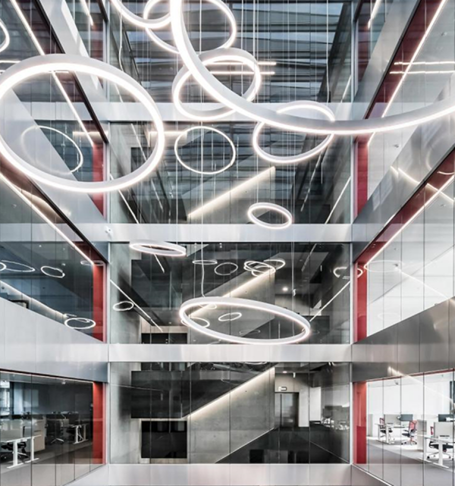 Search Excerpt: 3M's Switzerland headquarters echo the company's commitment to applying science to life. To emphasize the company's curiosity and innovation, the main lobby is decorated with pendant CIRCLE fixtures of varying lengths.
