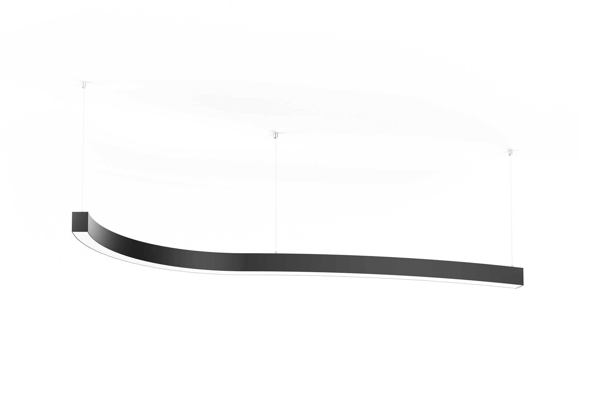 CURVE Pendant offers direct and direct / indirect lighting for both CURVE in all three sizes. Available in three colors with a matte finish. Snap-in LED boards and covers with light leak free gasket endcaps.