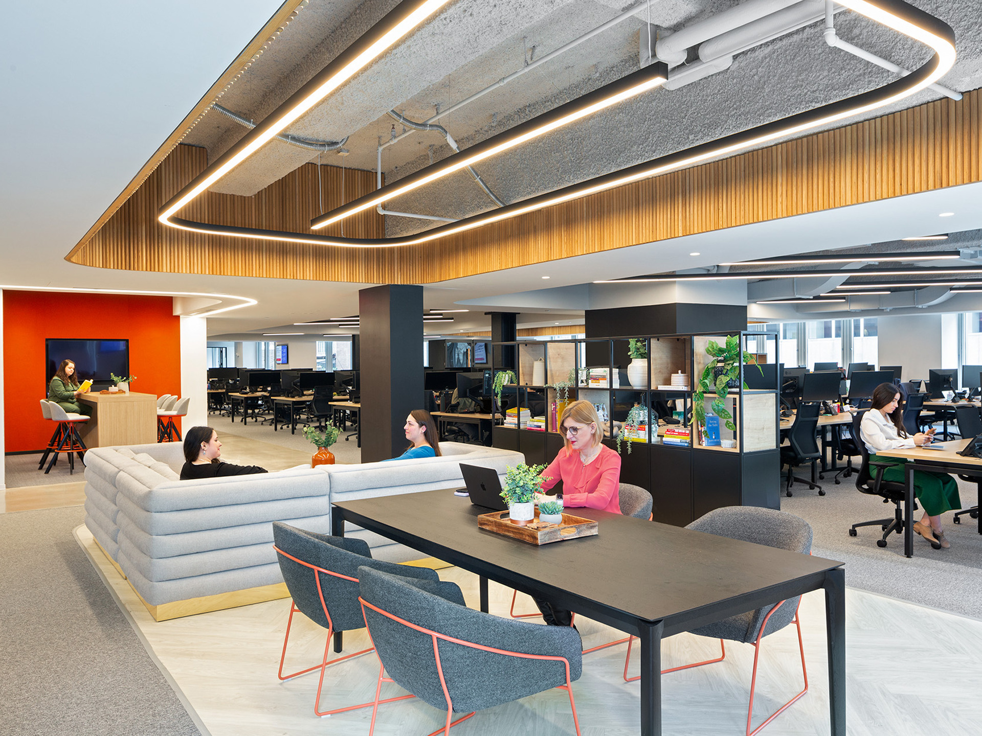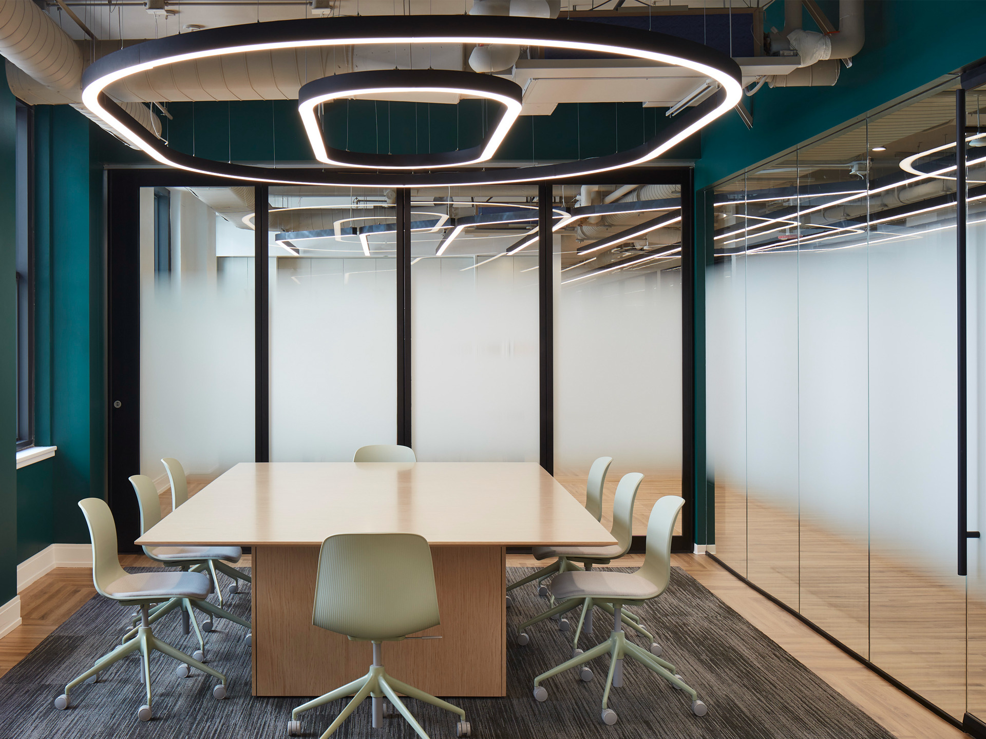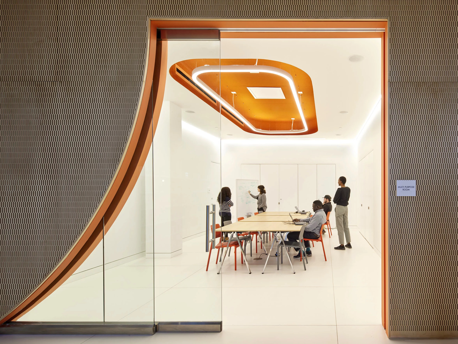 Match profile arcs to the architectural contours, trace the edges of an office with a recessed finish or using a pendant linear solution to draw light on the ceiling.