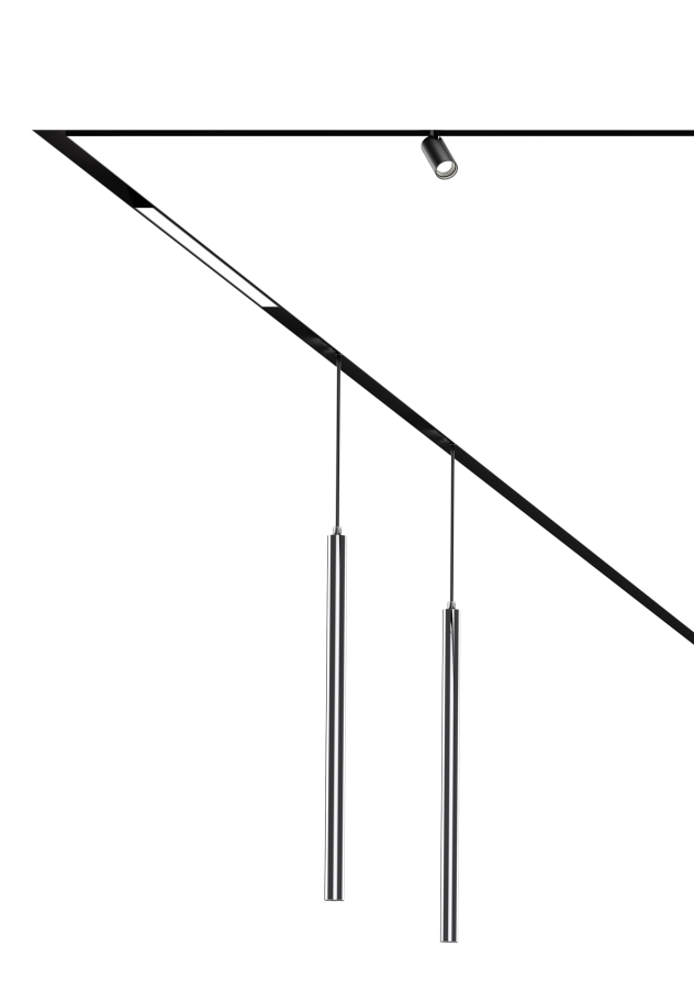 TUBE insets attach to the light rails inside the profile magnetically without any tools. You can rotate them 360° and move them freely on one end. Use the dual-axes track to angular lighting design.