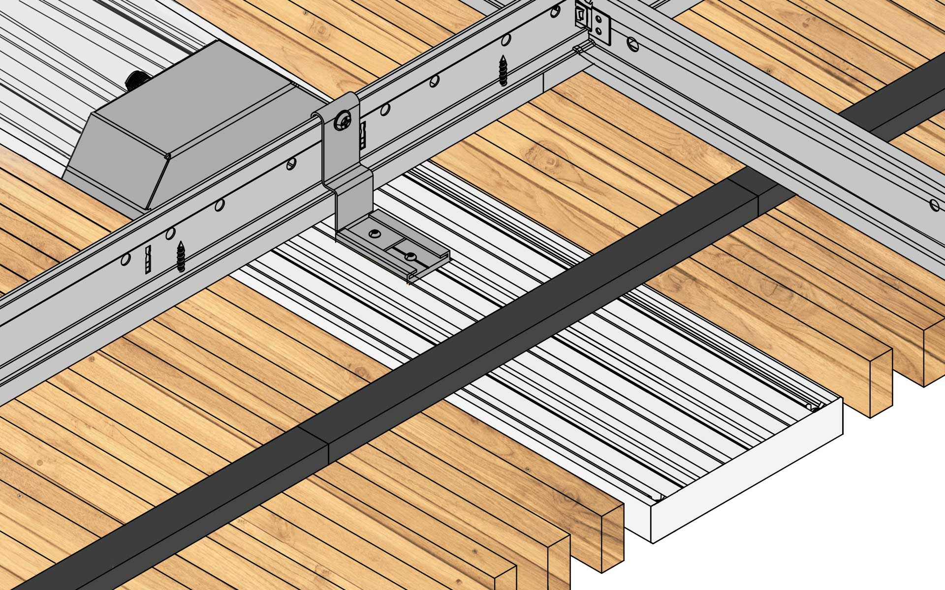 This version creates a sleek wooden finish where PANO aligns flush with the wood ceiling seamlessly.