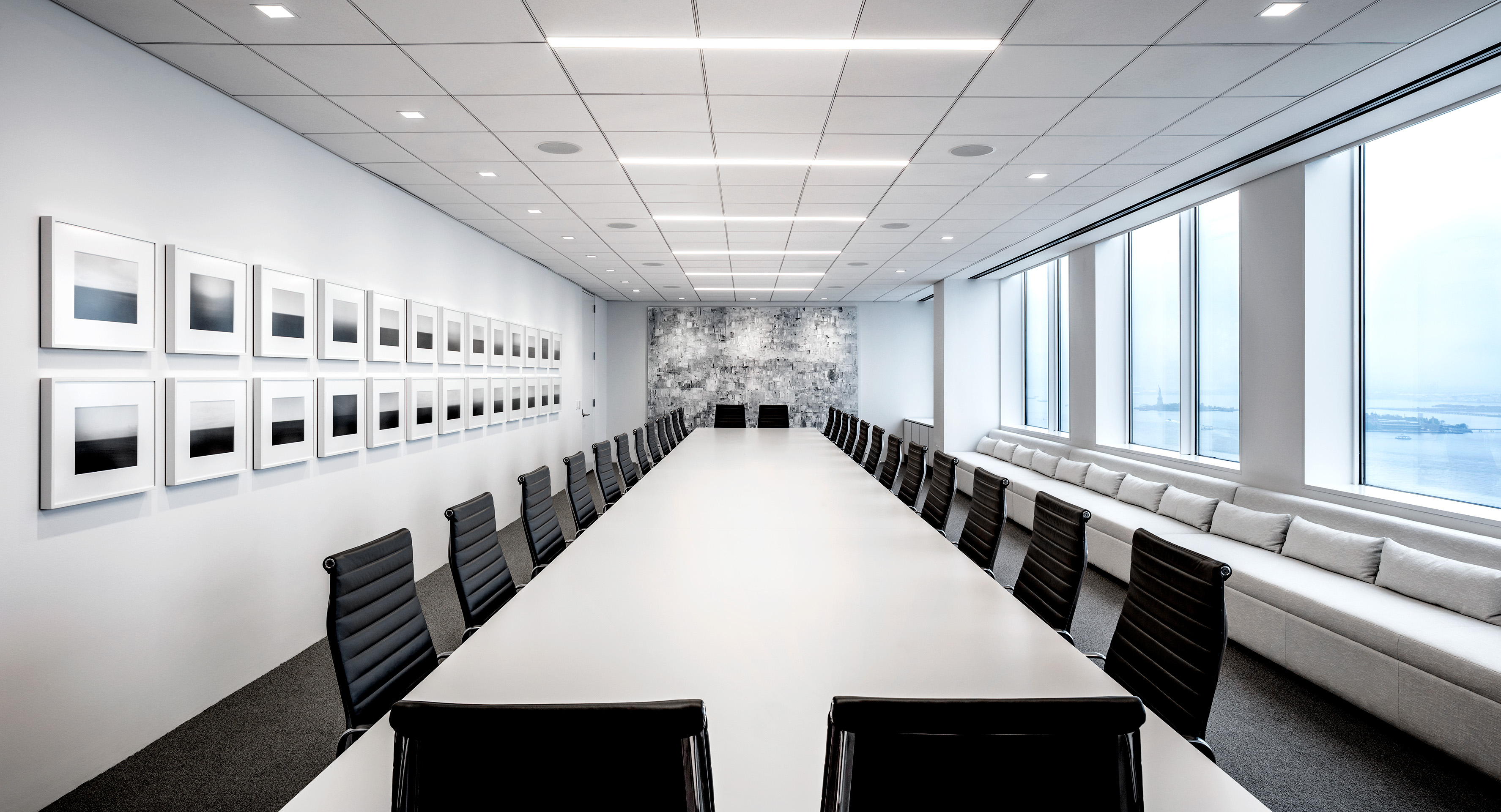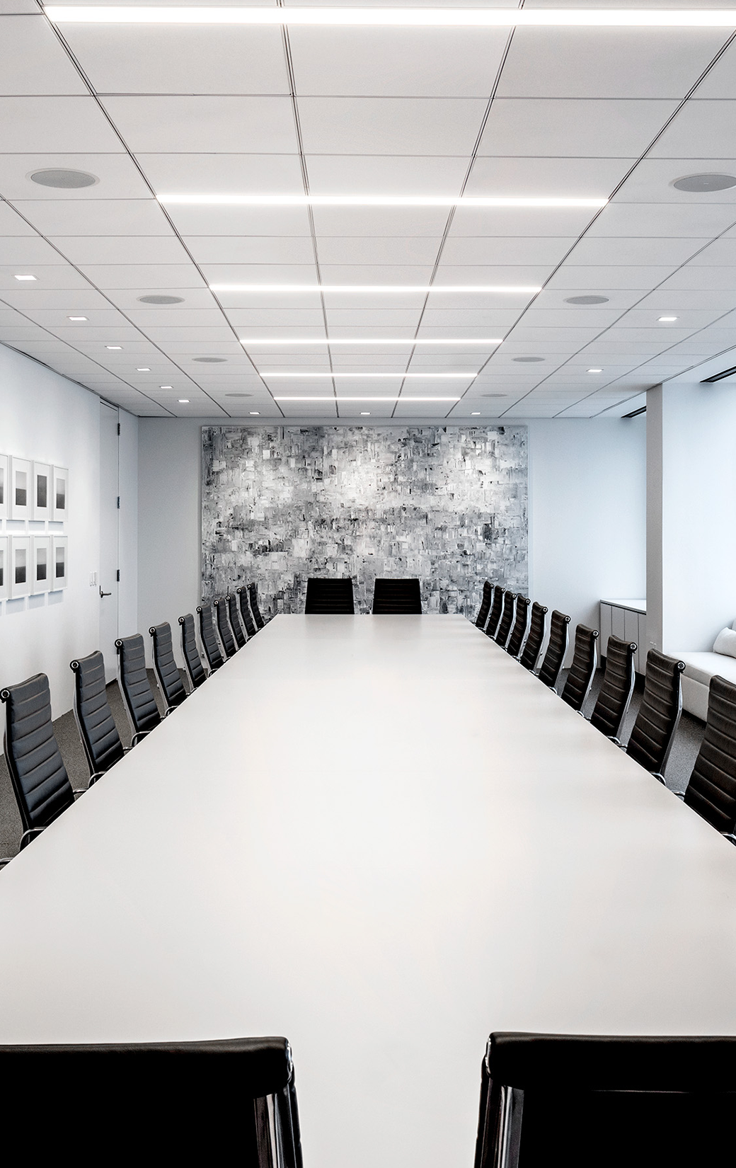 Designed by OneLux Studios, the Hudson Bay Company office is a clean high-rise space that is complimented by LENO. Ideal for linear offices, the interior is characterized by the long fixtures that stretch both horizontally and vertically. Outfitted in both the main office space and the conference room, LENO provides a clean solution that exudes professionalism.