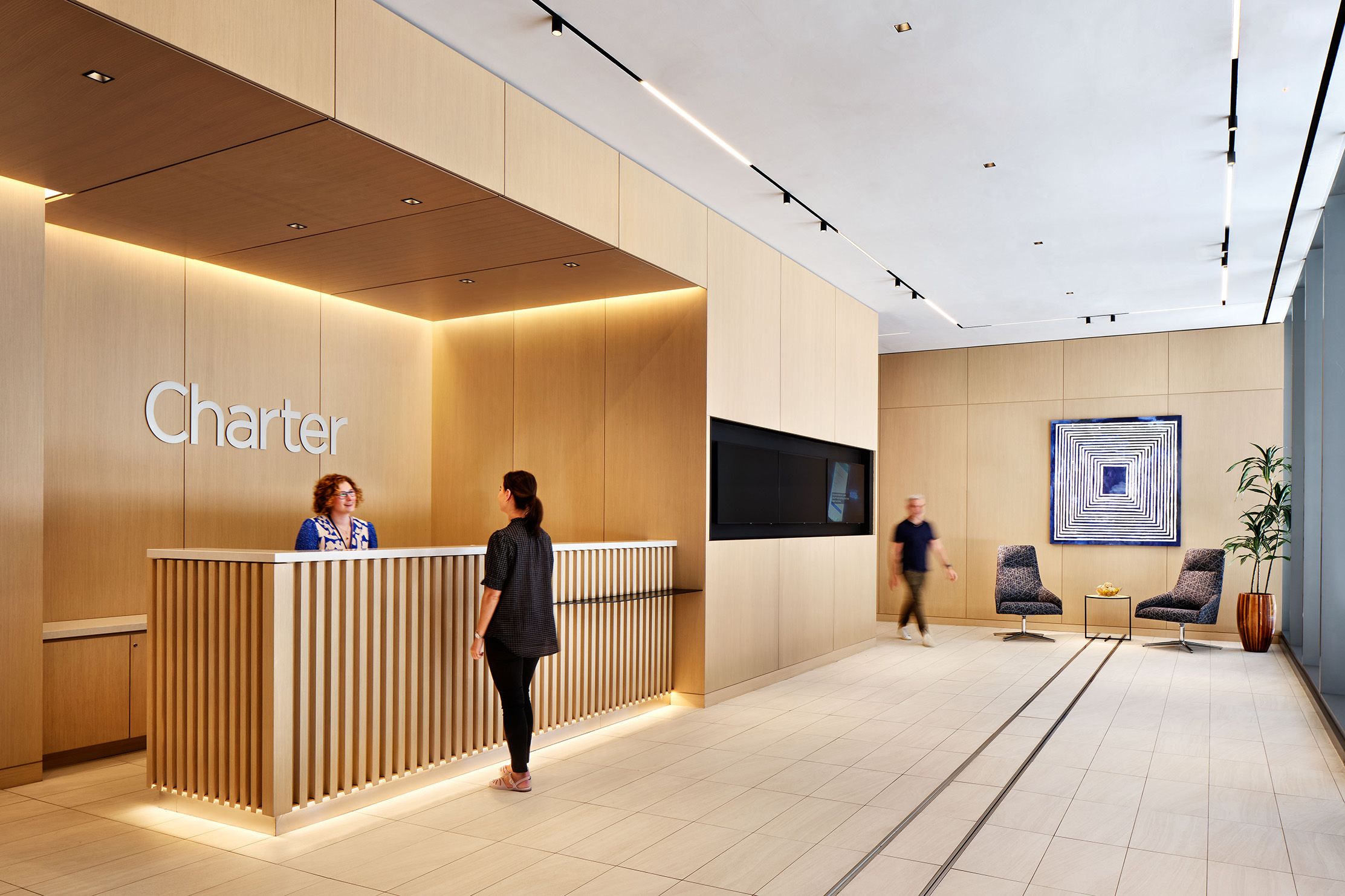 Based in Stamford, Connecticut, the Charter Communications is one of the largest cable providers in the United States. Throughout the lobbies, hallways, cafeterias and common areas, a careful selection of our products embolden every interior.