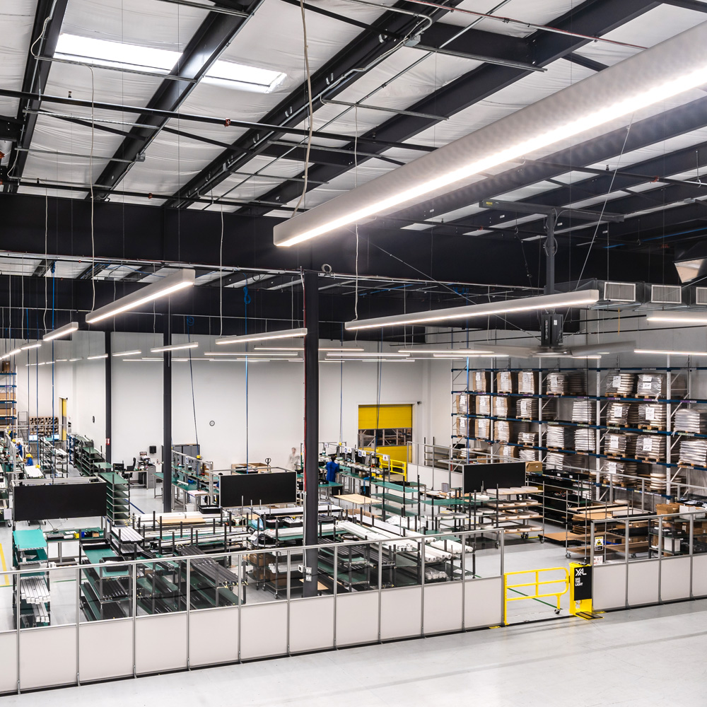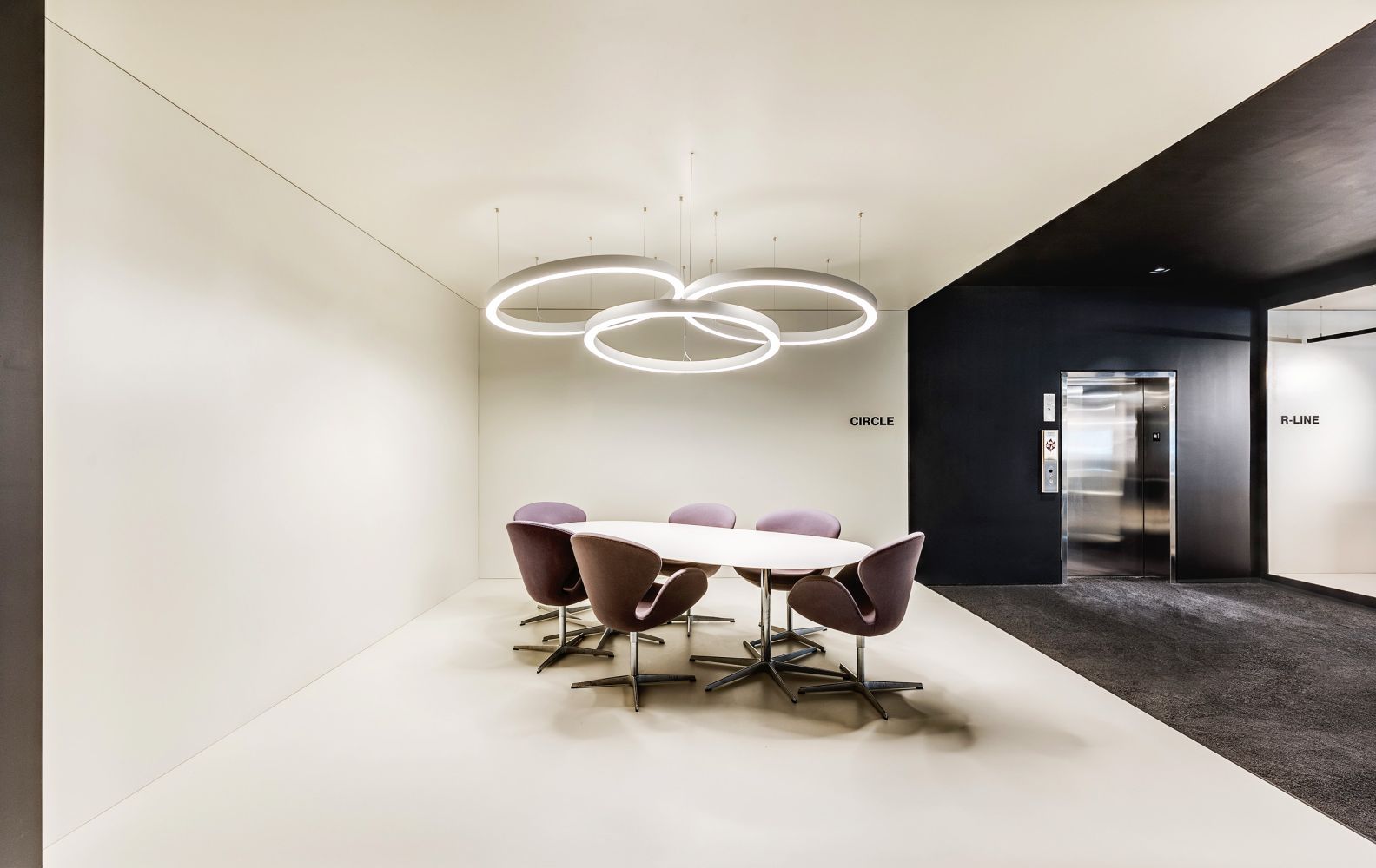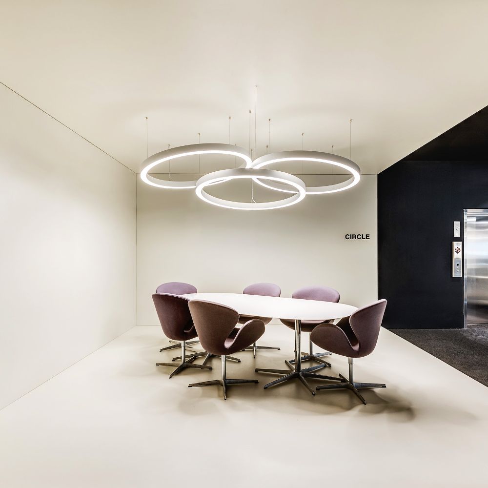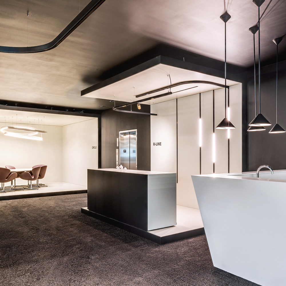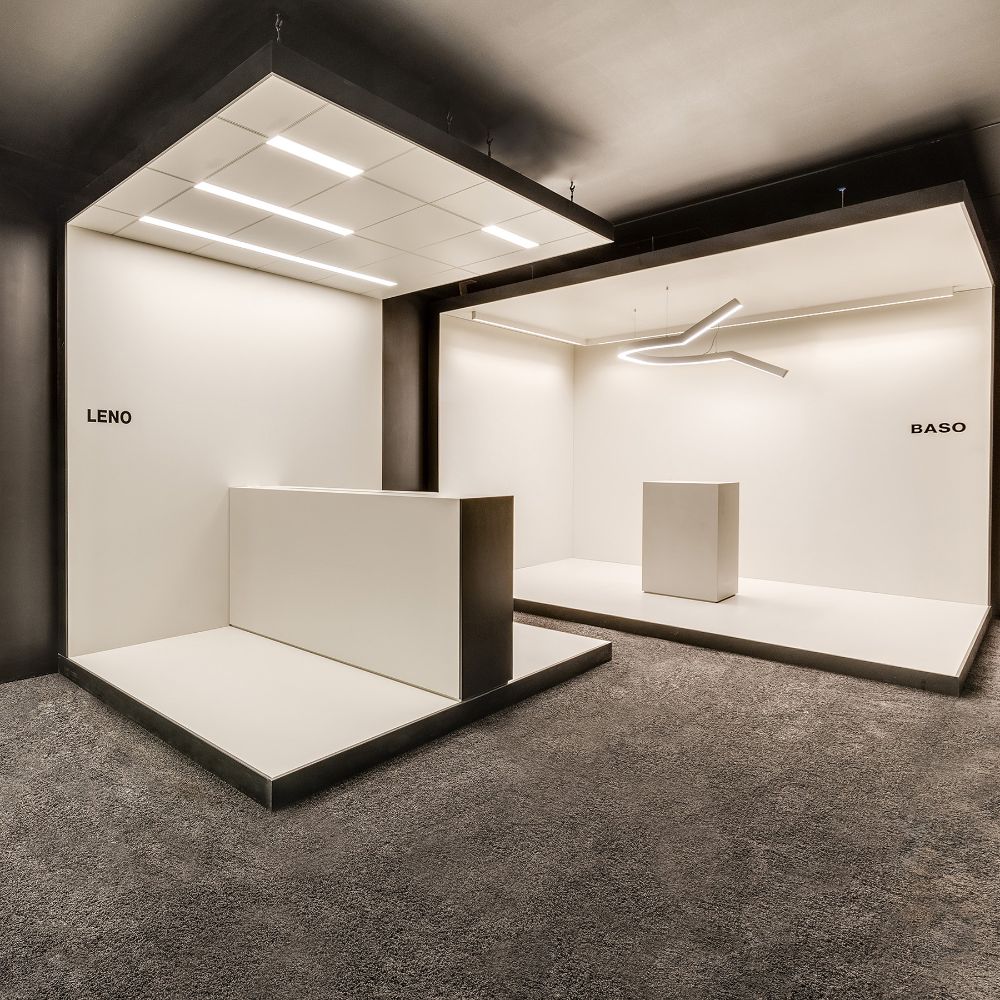 Along with practical applications, there are specially designed booths, featuring a selection of products. From the industrial application of BASO and LENO in our production line, the clean and professional presentation of CIRCLE, through to the dynamic and striking appearance of R-LINE and M-LINE, the factory presents the best of our lighting.