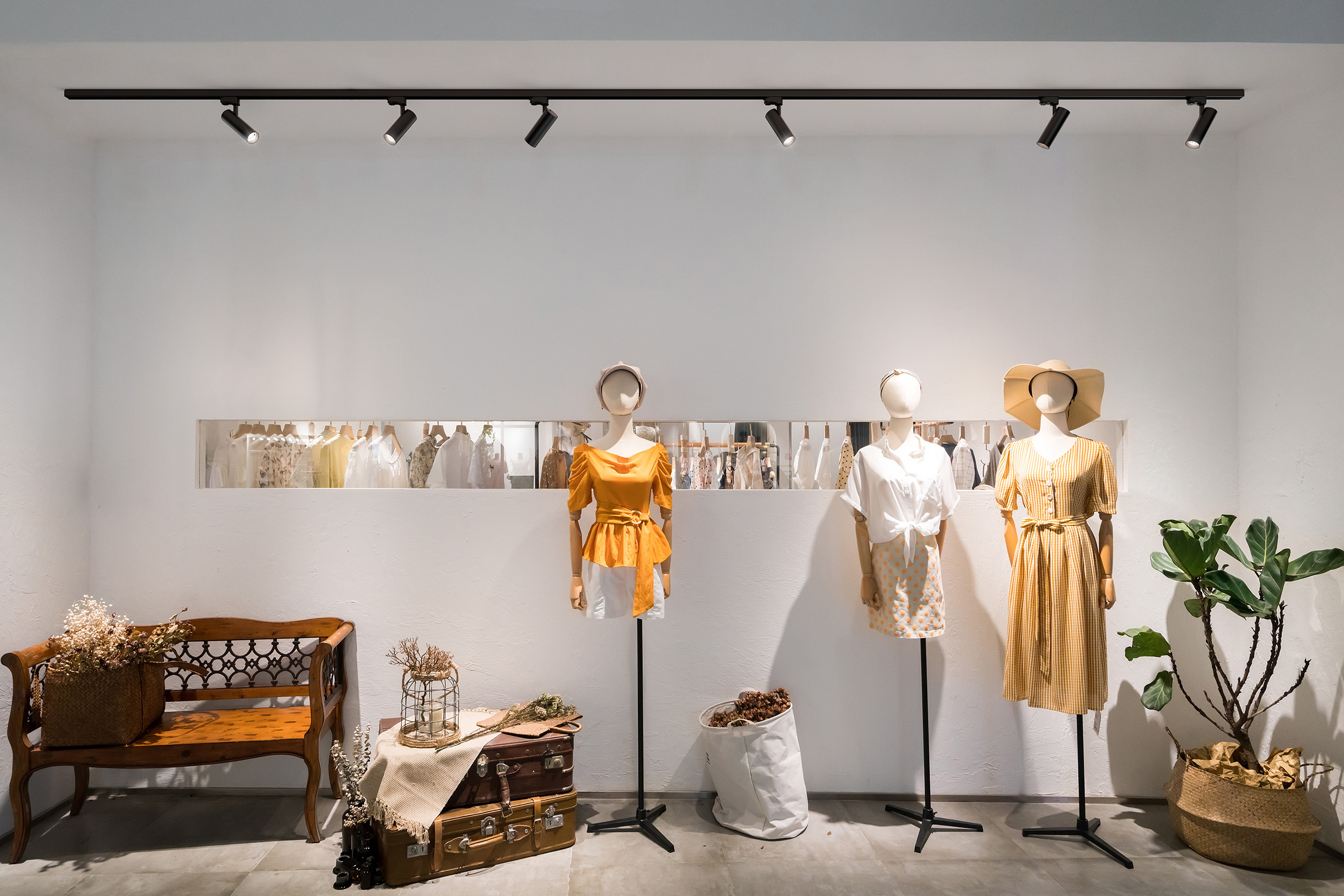 A visualization of T-LINE's potential in the market. With a sleek design and decorative spot lights, T-LINE is an ideal choice for retail and store front spaces.