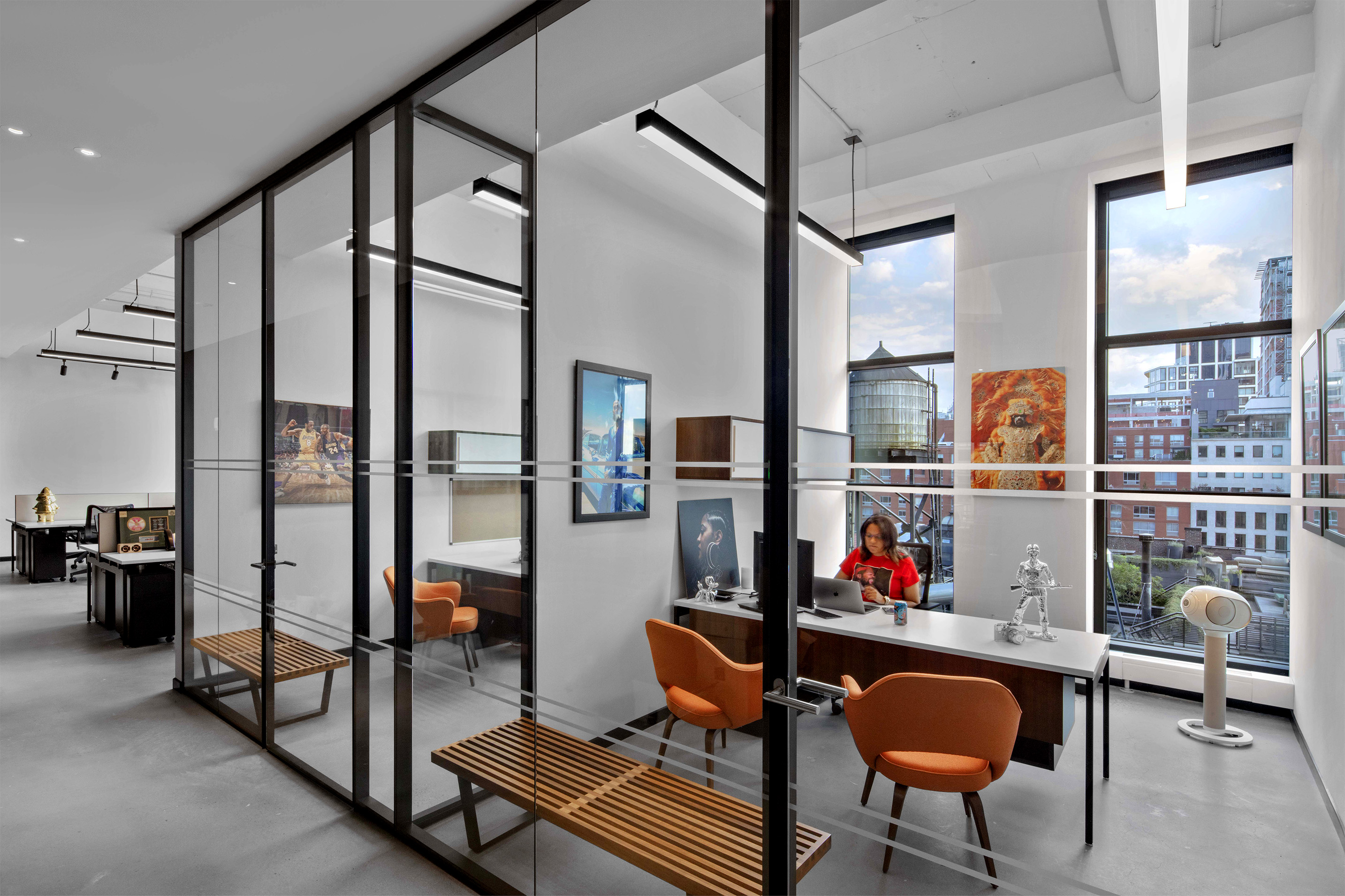 Roc Nation is an entertainment label founded by renowned rapper, Jay-Z has its headquarters built in the heart of New York City.Its offices were visualized with professionalism and creativity in mind.BASO recessed and pendant lights illuminate both individual offices and cubicles. A recessed finish stretches across the conference room offering a warm light to compliment the wood finish and contrast with the cool marble table.