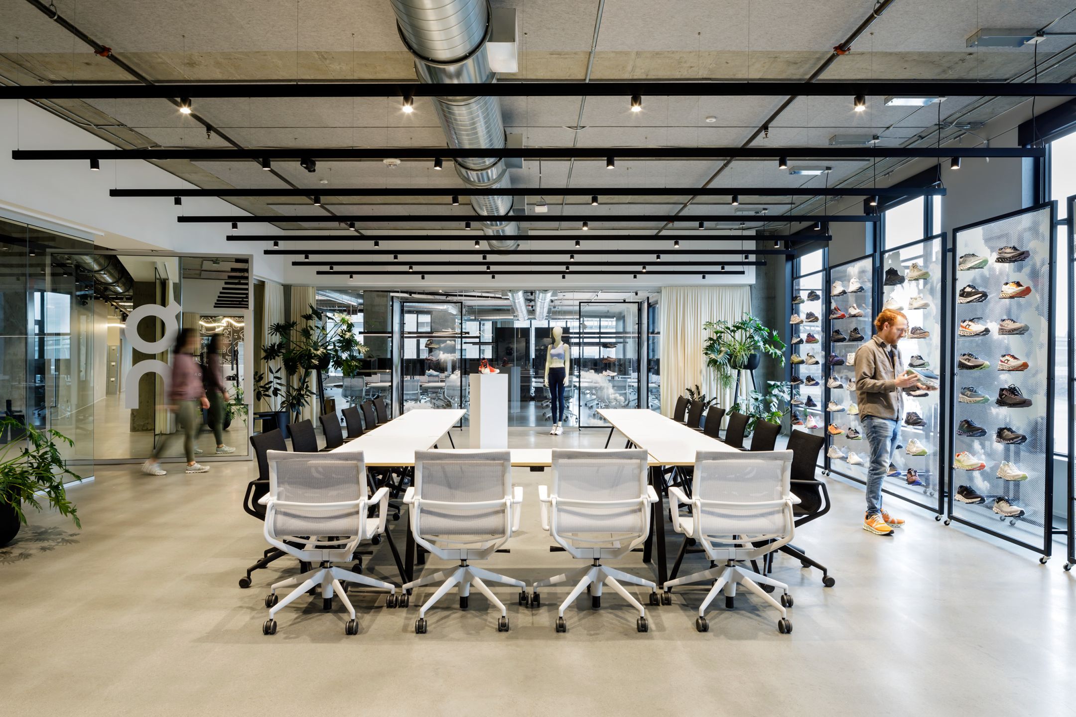 ON Running’s office in Portland, Oregon fits the unique voice of the city itself.This dramatic building uniquely blends European sensibility with the beauty of the Pacific Northwest.The lobbies and product displays have a reliable rhythm of M-LINE tracks for even and relaxed lighting. Diametrically, the massive triangular ceiling window is perfectly traced by track lights to cleverly illuminate the open work spaces.