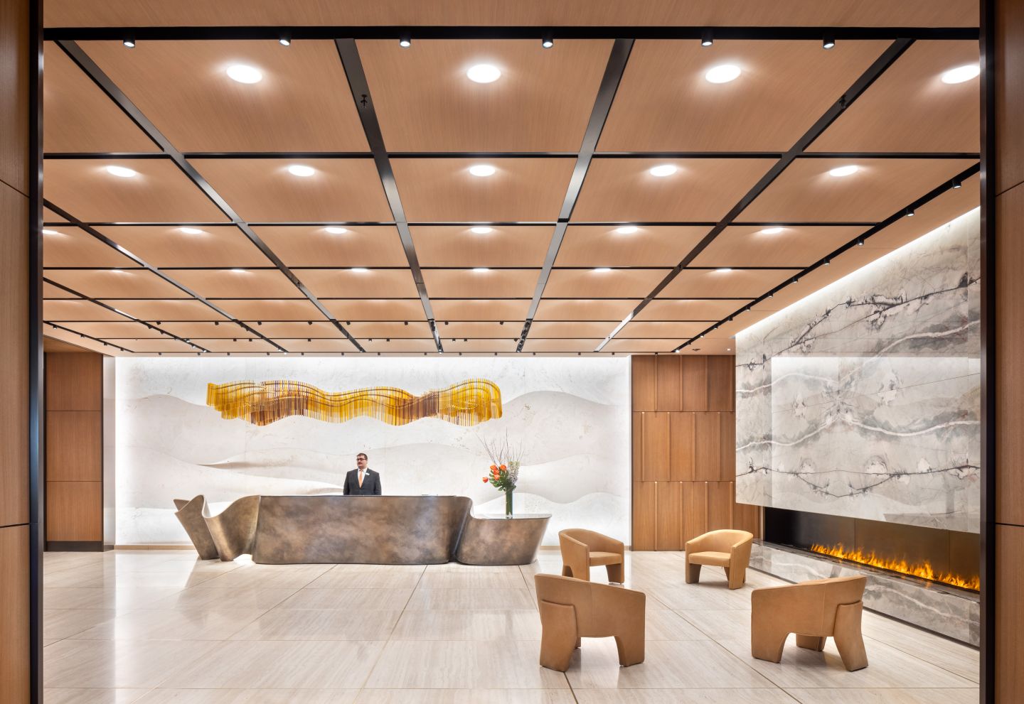 50 Hudson Yards is the headquarters of premiere companies from across the country. The interiors have a high demand for a lighting solution that is both spacious and versatile. M-LINE spotlights line a huge track that circles the entire main lobby and highlight the receptionist with a cluster of spotlights hovering over the front desk.