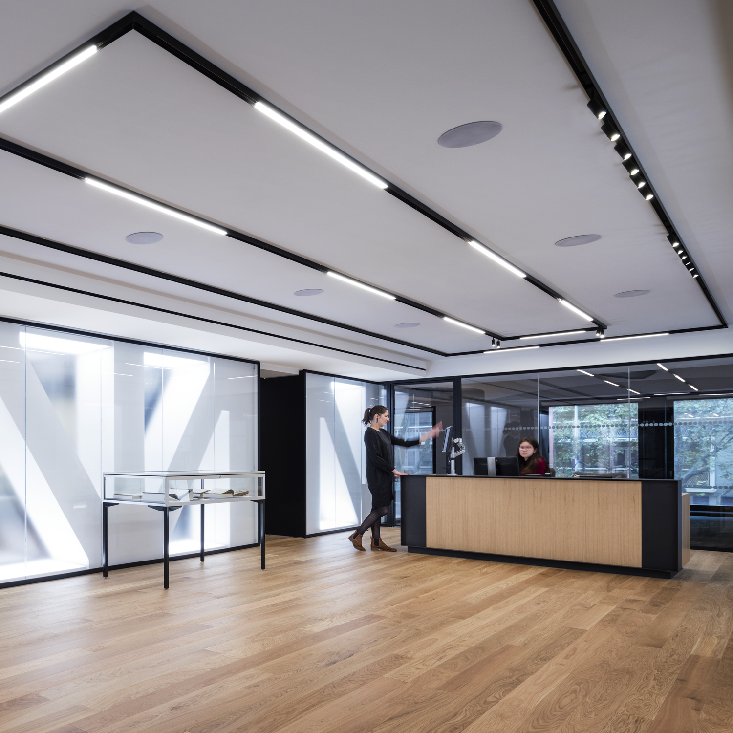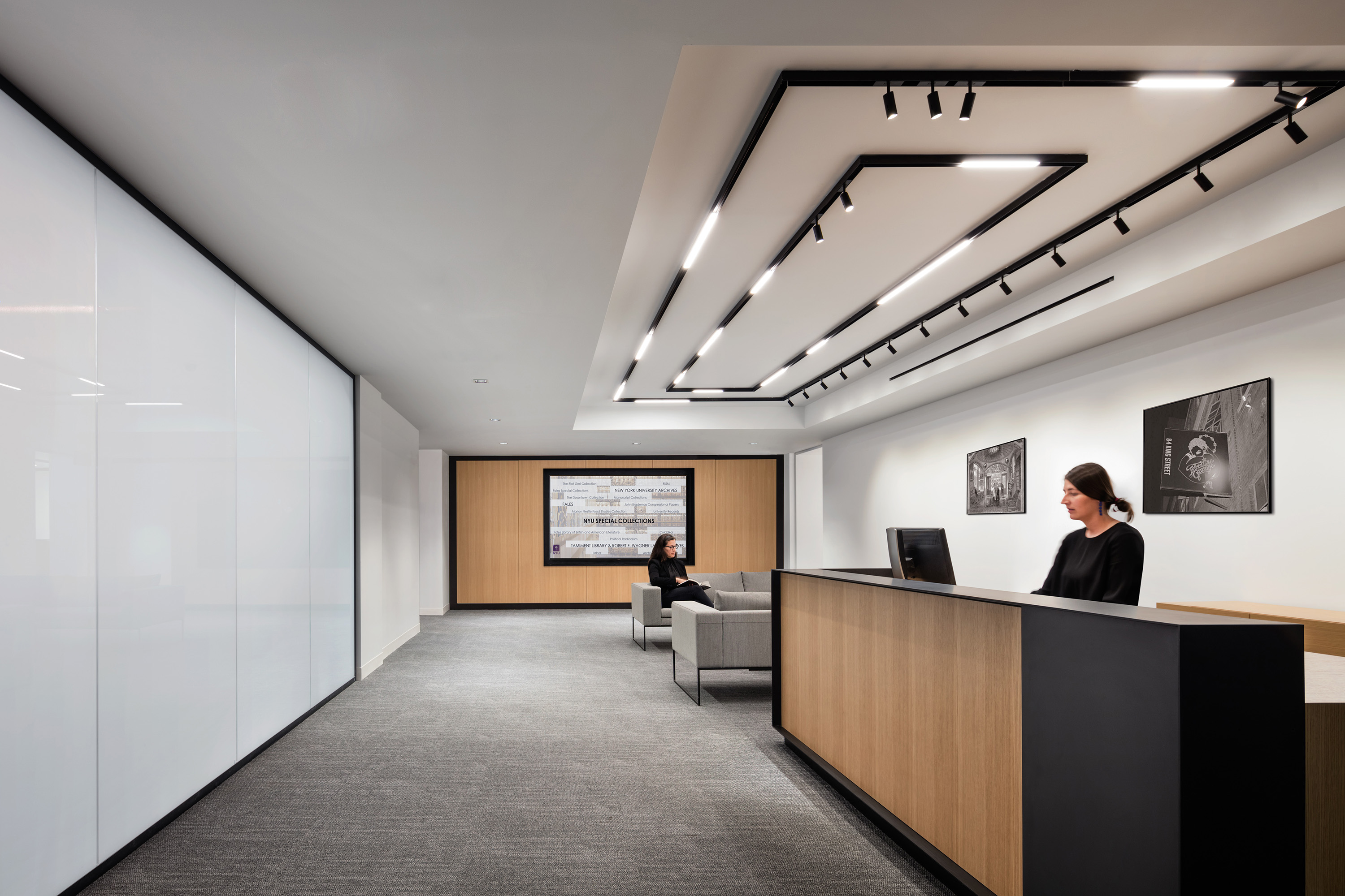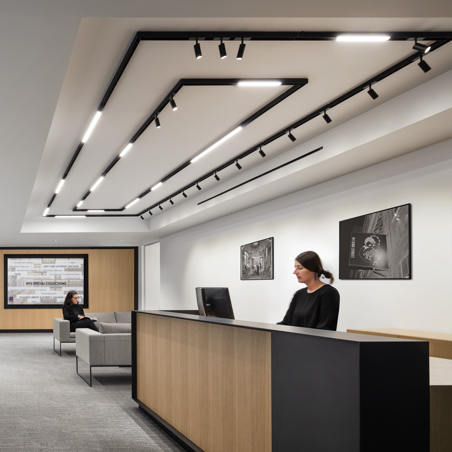 M-LINE linear insets and spots are employed throughout the special collections to complement the long, linear hallways and lobbies with accompanying dialogue.