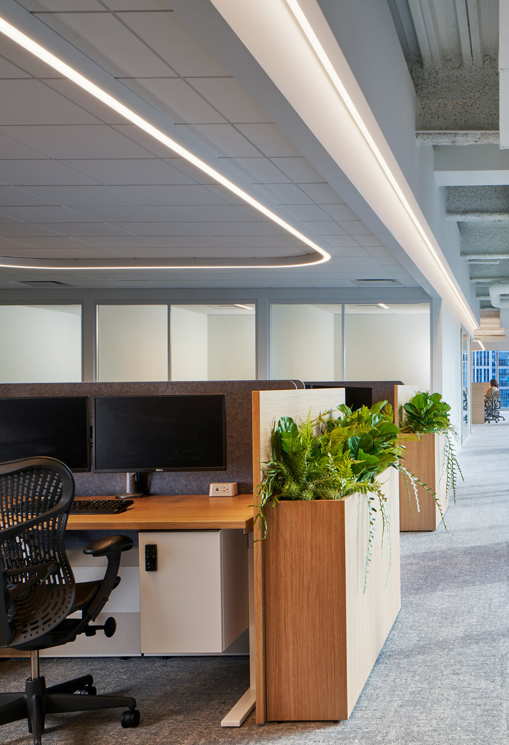 Founded in 2010, Ryan Specialty is an international insurance firm, dealing with high profile clients. The office space boasts a simple, streamlined linear finish with a lounge and corridors for cubicles. X-LITE creates a subtle environment for the lounge area and BASO moves through the corridors in a clean and continuous run.