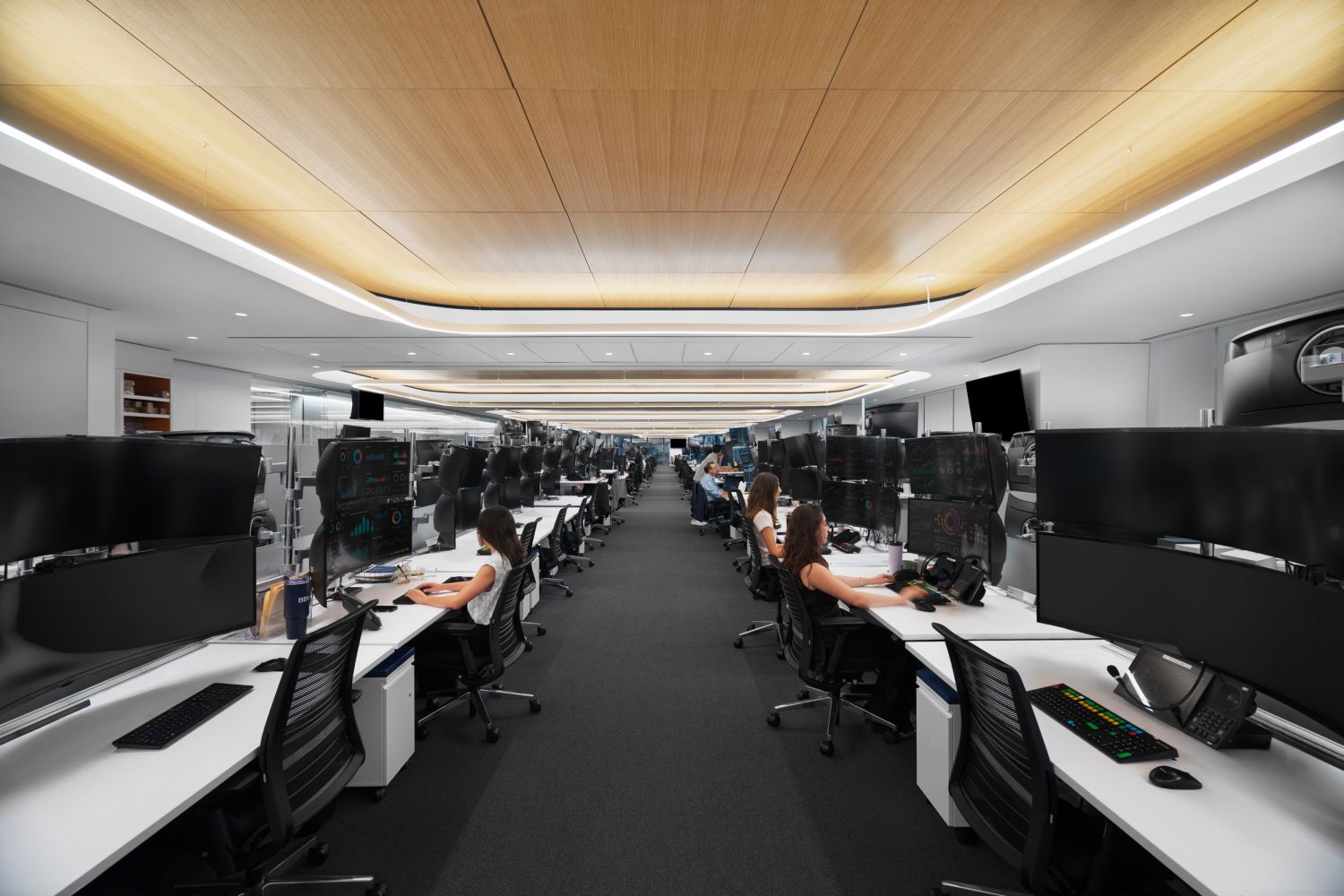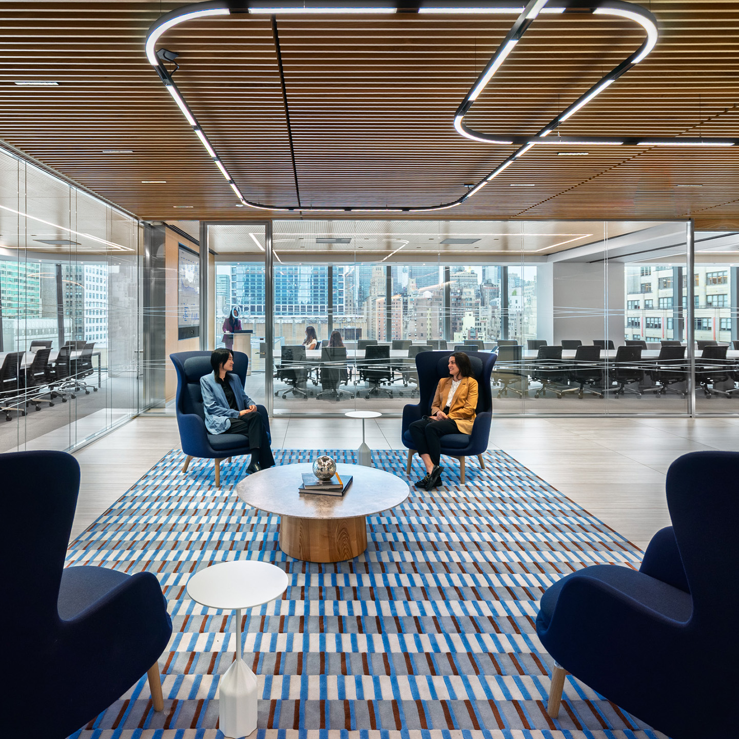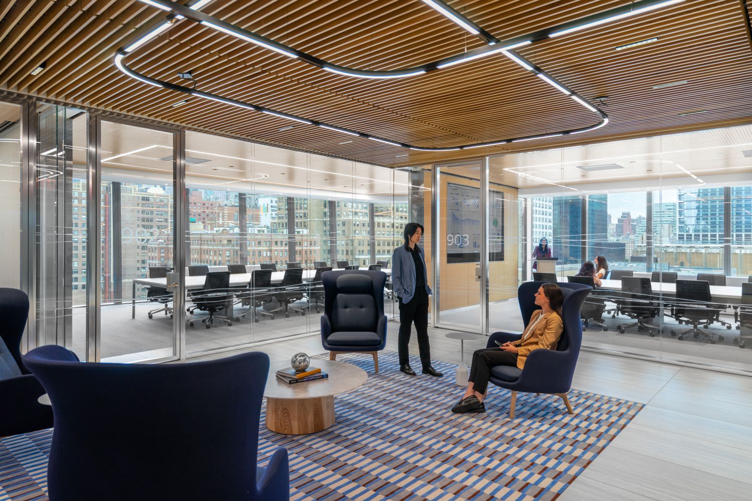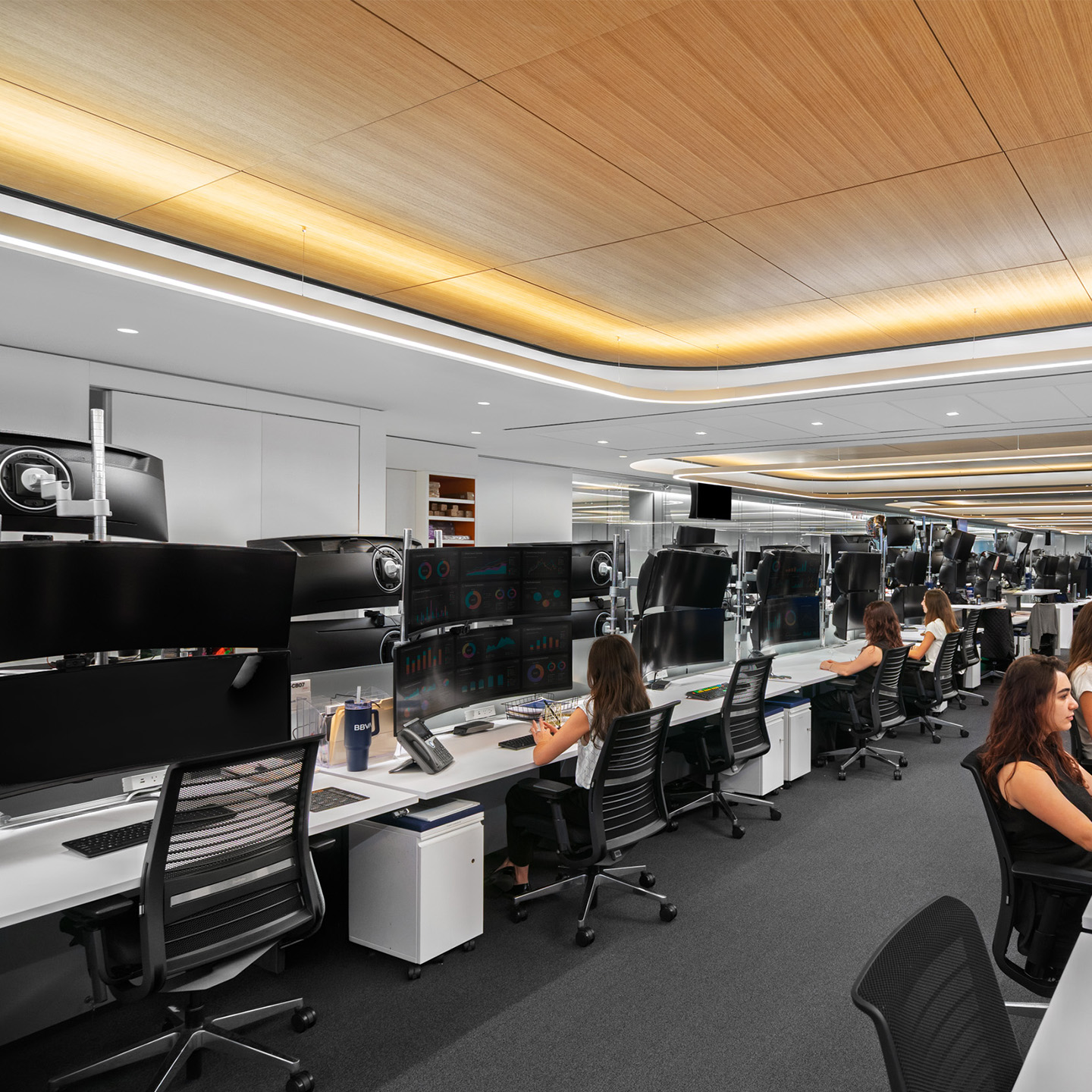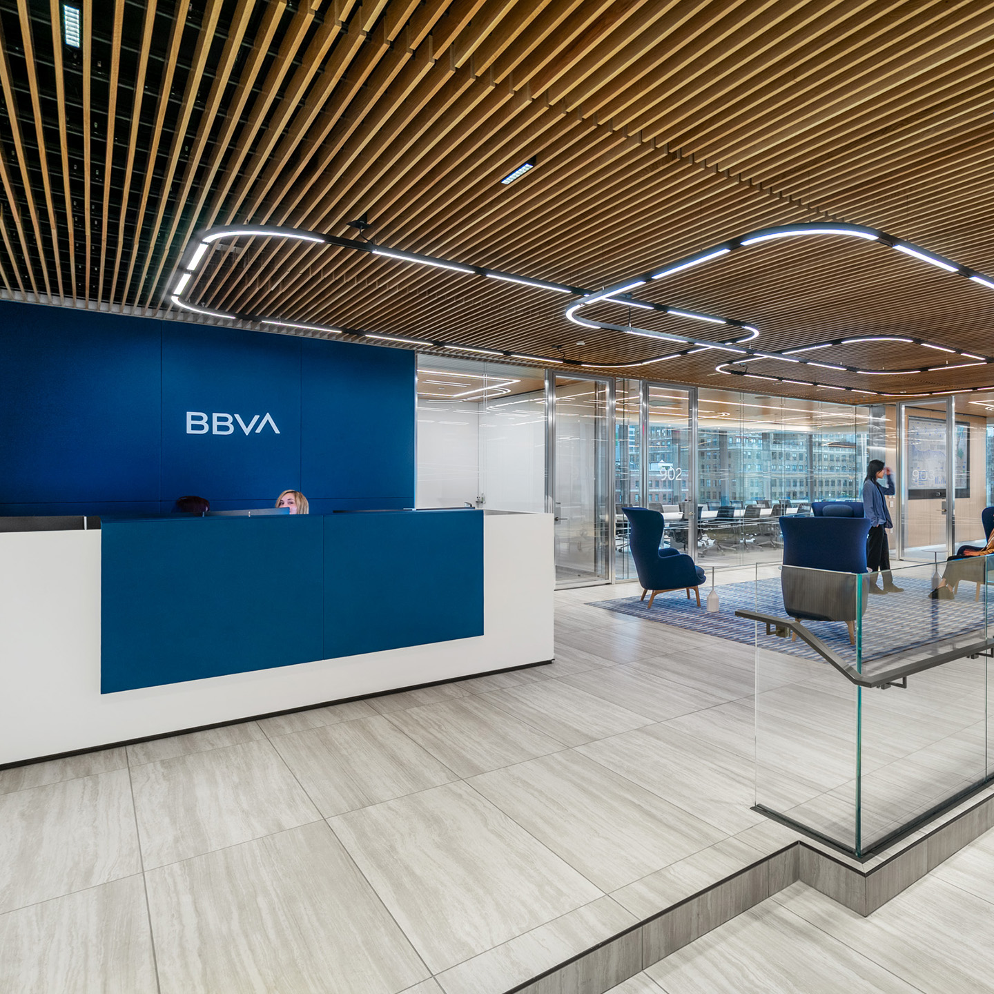 Located at Brookfield's Two Manhattan West, observing Hudson Yards from the eighth and ninth floor, BBVA (Banco Bilbao Vizcaya Argentaria) is one of the largest financial institutions in the Spanish market. An impressive and lucrative market portfolio requires a professional and streamlined office that prioritizes essential and sophisticated design elements.