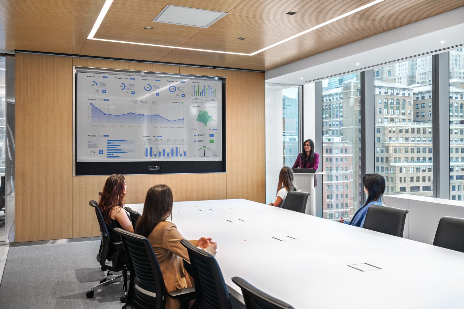 R-LINE provides sophistication in the main lobby with the powered track adorned with LINEAR and CURVE insets that run parallel to the geometric interior of the furniture and decor. BASO and CURVE supply the essentials in the open offices and board rooms with sleek, understated installations that enhance and illuminate each room with precise subtlety.